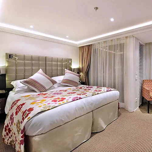 Brightly colored floral and geometric patterns from stateroom to Main Lounge immediately show you that the AmaViola is no ordinary river cruise ship. Twin balconies in most staterooms maximize your enjoyment as steeples and vineyards glide by. Mouthwatering cuisine worthy of La Chaîne des Rôtisseurs, an exclusive and internationally-renowned gastronomic society, is served from sunrise to sunset. There’s something symphonic about the flourish and style of The Chef’s Table specialty restaurant and the coordinated effort to serve each bold, beautiful and delicious course of the regionally-inspired tasting menu. Butterfly wallpaper in the hair salon highlights how you’ll emerge brand new while an inviting sun-deck pool with a swim-up bar refreshes your spirit. Plus, AmaViola inspires you to be the best version of yourself with a walking track, fitness room and fleet of onboard bikes to keep you happy and healthy during your cruise.